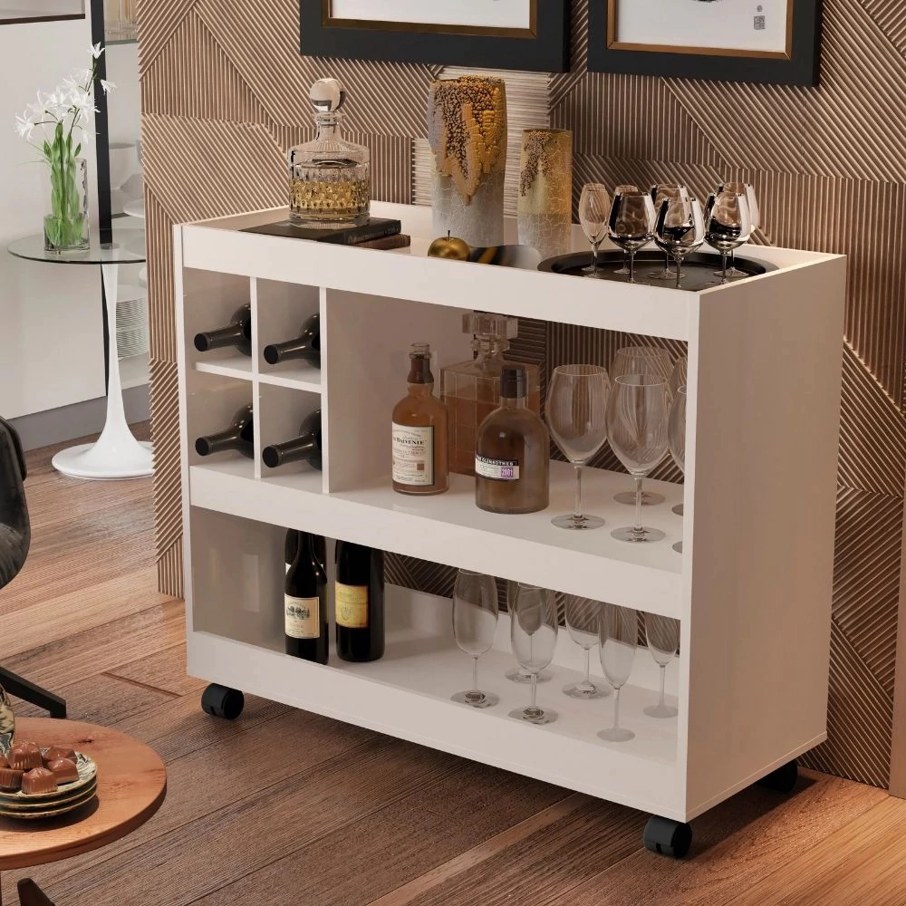 Aparador Luxo 4050 da Móveis JB Bechara, campeão de vendas em todas as cores. Suporta até 4 Garrafas e conta com rodízios.