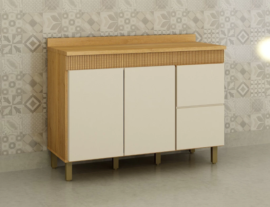 Balcão para cozinha 120cm 3 portas 2 gavetas dakota cinamomo/off white. O balcão de 120cm com 2 gavetas é uma peça essencial para a sua cozinha. Com seu design compacto e funcional, oferece espaço de armazenamento conveniente para utensílios, talheres e outros itens essenciais. Sua construção robusta e elegante complementa perfeitamente o ambiente, combinando praticidade e estilo em uma única unidade. Estilo: moderno garantia: 03 meses acabamento: pintura uv possui pés: 6 possui portas: sim tipo de porta: bater escala de brilho: fosco material dos pés: abs cesto para frutas: não material da porta: mdf material do tampo: mdp origem do produto: nacional acabamento dos pés: plástico ambiente principal: cozinha material da gaveta: mdp material principal: mdf/mdp possui prateleiras: sim acabamento da porta: pintura acabamento da gaveta: pintura uv material da prateleira: mdp acabamento da prateleira: pintura uv tipo de puxador da porta: embutido escala de brilho da porta: fosco tipo de puxador da gaveta: embutido escala de brilho da gaveta: fosco tipo de corrediça da gaveta: metálica telescópica escala de brilho da prateleira: fosco tipo de dobradiça/corrediça da porta: 35 mm material da dobradiça/corrediça da porta: metálica cor predominante: bege quantidade de prateleiras: 02 prateleiras quantidade de gavetas: 02 gavetas modular: não pés reguláveis: sim possui rodízio: não acompanha tampo: sim suporta granito: não gaveta com chave: não sapatas niveladoras: sim balcão acompanha pia: não possui recorte para cooktop: não fabricante: valdemóveis marca: valdemóveis cor interna: cinamomo cor do produto: cinamomo/off white itens inclusos: 1 balcão 120cm dakota, 1 manual de montagem, 1 certificado de garantia medida do tampo (l x c x e): 2,5cmx53cmx120cm peso (kg): 48.5 altura (cm): 95 largura (cm): 120 altura dos pés: 14 suporta até (kg): 30 profundidade (cm): 53 peso máximo por gaveta: 5 peso máximo por prateleira: 10 quantidade de portas: 3