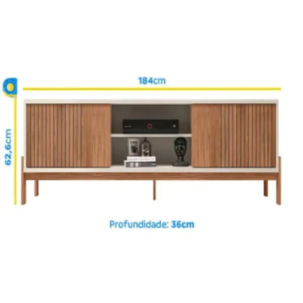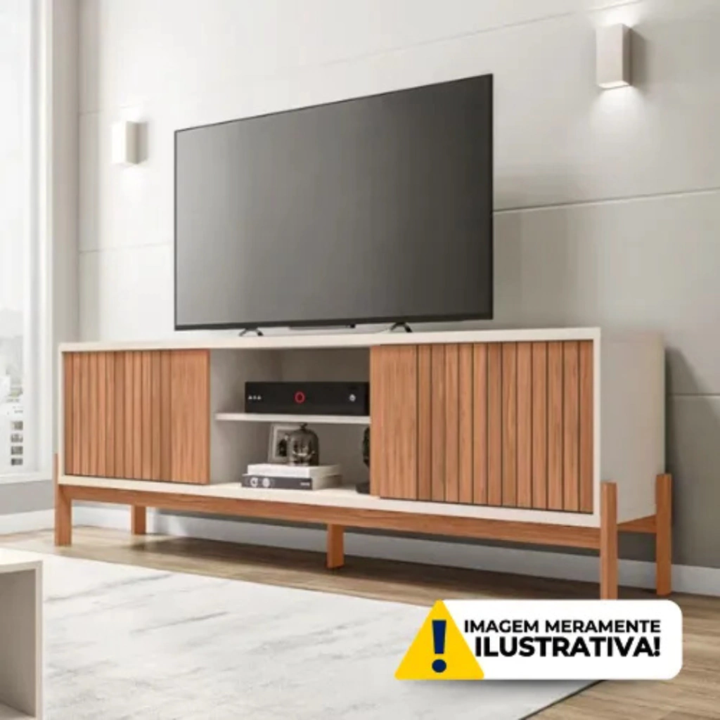 Rack para TV de ate 72” Tannen 1.8 da Caemmun - Elegância e Sofisticação em Sua Sala. Um móvel elegante com pés de cavalete em 18mm e acabamento em madeira atemporal e sofisticado. Tem 2 portas de correr com detalhe ripado que adiciona um toque de charme e praticidade ao ambiente. Seus pés de cavalete proprocionam mais estabilidade e robustez ao móvel, garantindo sua durabilidade e segurança. Acabamento em Madeira proporciona um visual atemporal e sofisticado, tornando a bancada uma peça de destaque na sua sala de estar. Experimente a elegância e funcionalidade da Bancada Para TV Tannen e transforme sua sala de estar em um ambiente ainda mais acolhedor e sofisticado. Não espere mais para adicionar esse toque de estilo ao seu espaço.