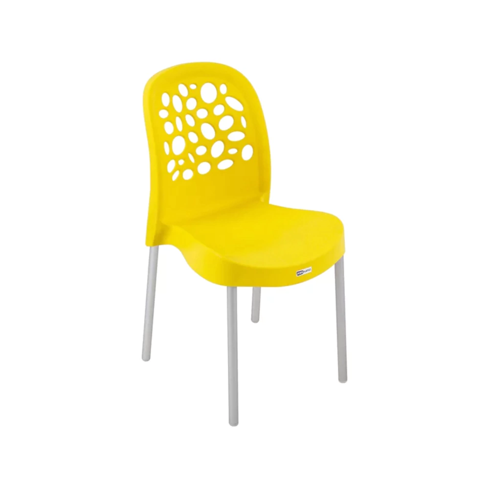 Esta cadeira é prática de manter. Sua superfície lisa e durável é fácil de limpar, sendo uma opção higiênica. Além disso, sua estrutura empilhável permite que você economize espaço quando não está em uso.
