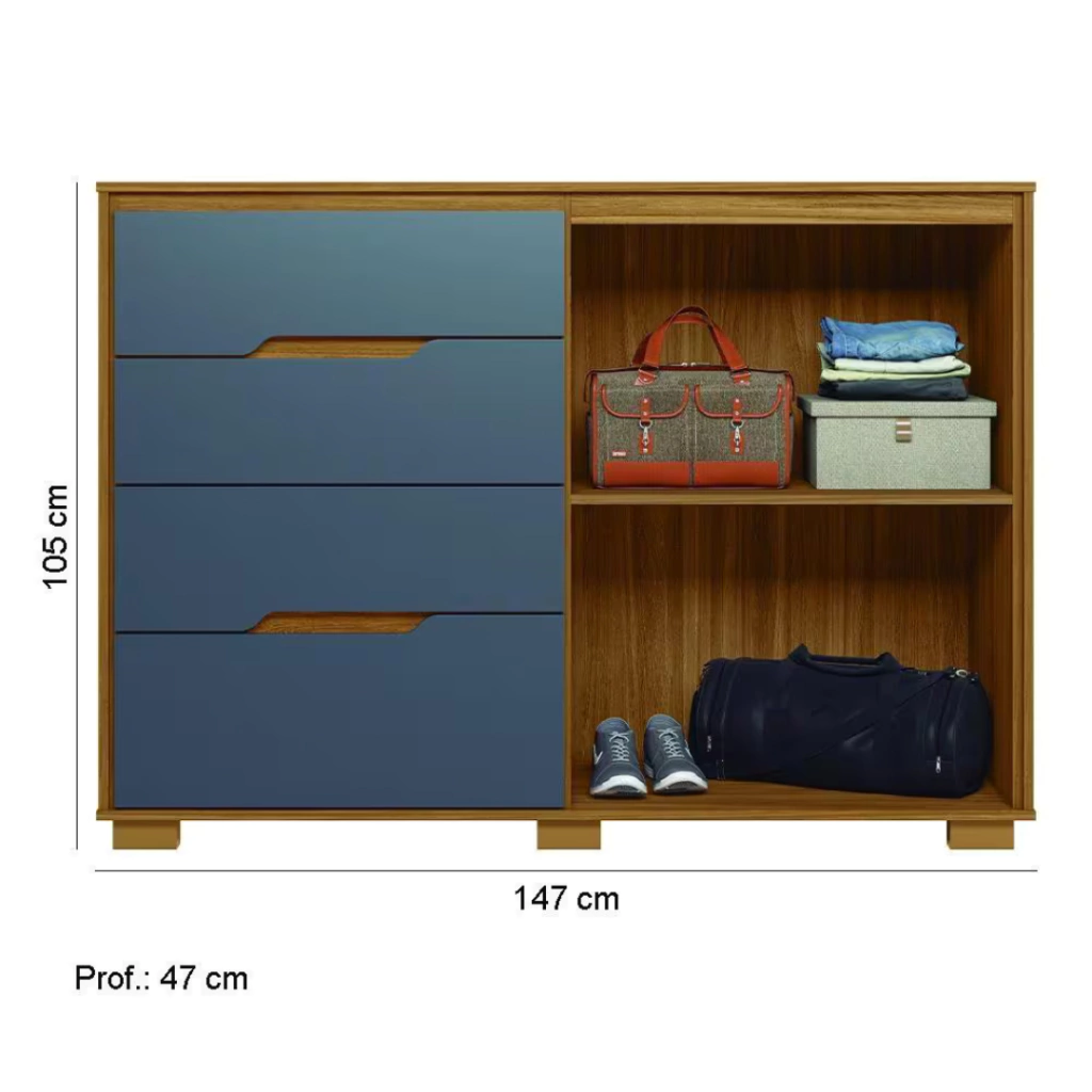Com suas duas portas ripadas e quatro gavetas espaçosas, a Cômoda Texas é uma peça de destaque que combina perfeitamente com qualquer decoração. Seu design moderno e elegante adiciona um toque de sofisticação ao ambiente do seu quarto.
