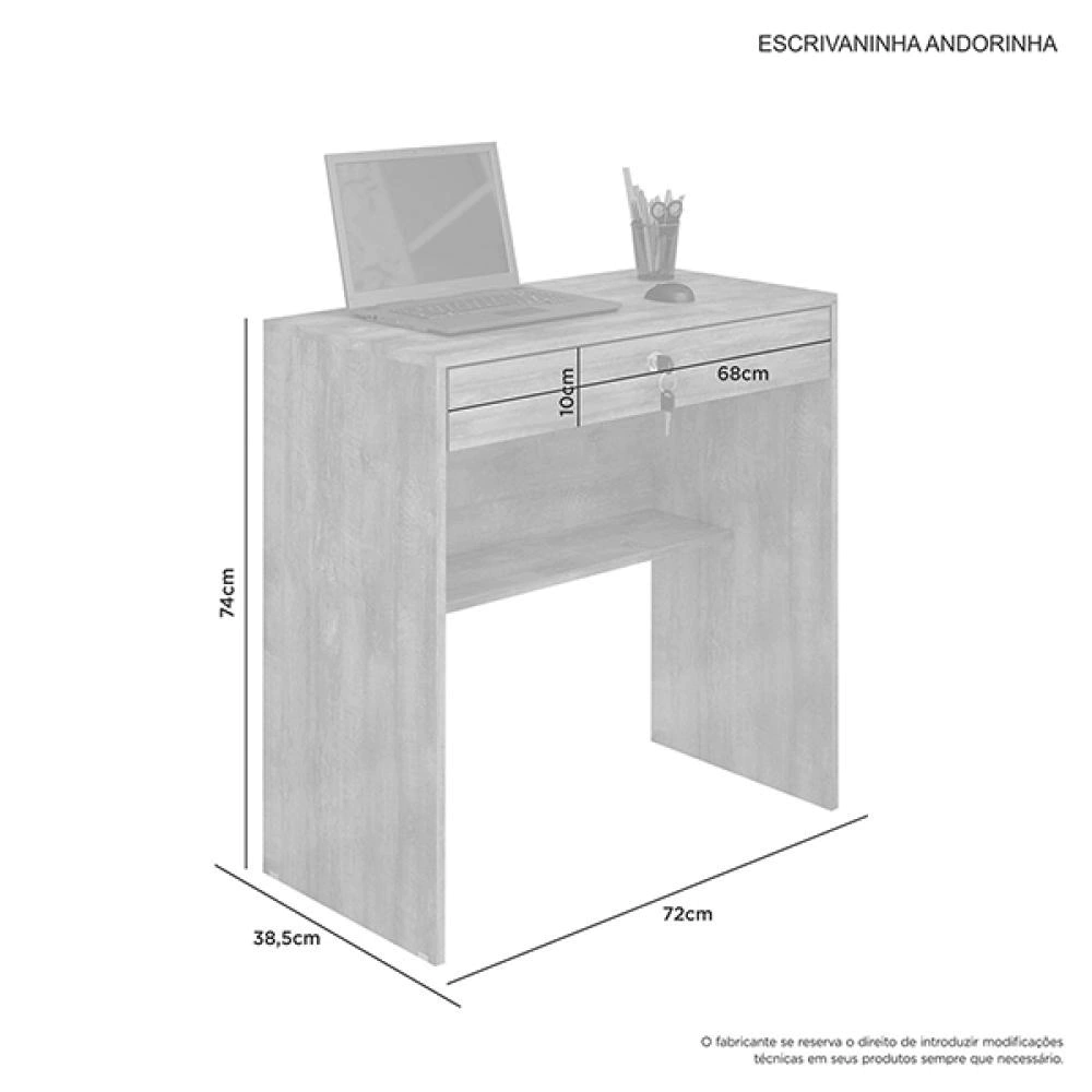 Um móvel de grande praticidade tanto para quem está disposto a estudar quanto trabalhar é a escrivaninha andorinha, com ela você ganha em dinamismo e utilidade para instalar seu computador pessoal ou notebook, tornando seus dias bem mais produtivos. Um destaque especial para a gaveta com chave e corrediças Telescópica onde pode guardar documentos pessoais, revistas, livros, entre outros variados pertences!