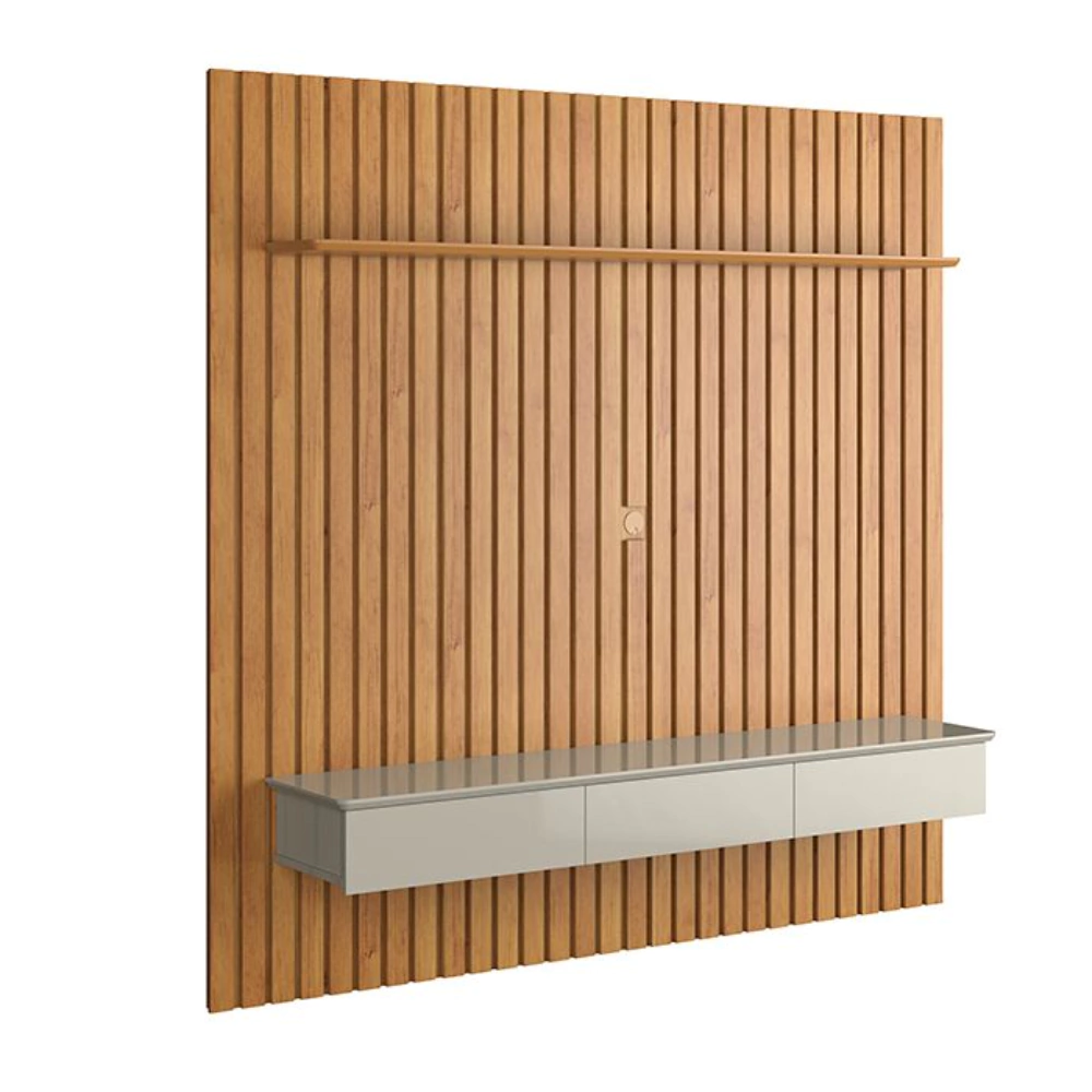 Possui amplo espaço de armazenamento, com 2 portas de correr, 3 prateleiras e 1 nicho, perfeito para organizar seus objetos eletroeletrônicos, livros, DVDs e outros itens. Ele também conta com um painel para TV com suporte para TVs de até 75 polegadas.