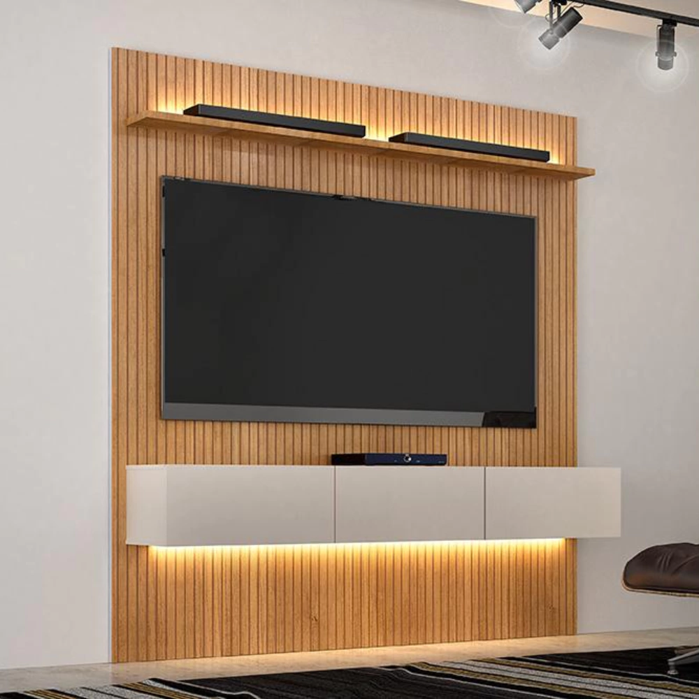 Painel Curitiba Com Nicho 179cm para TV até 70 Polegadas Valdemoveis Cinamomo Off White