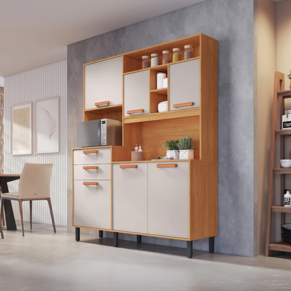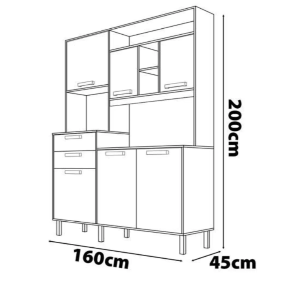Com suas seis portas e duas gavetas, este kit proporciona um espaço amplo na cozinha para armazenamento, permitindo que você mantenha seu ambiente organizado sem comprometer a estética. Ideal para acomodar diversos itens, desde utensílios domésticos até objetos pessoais, mantendo tudo ao alcance, porém fora da vista.