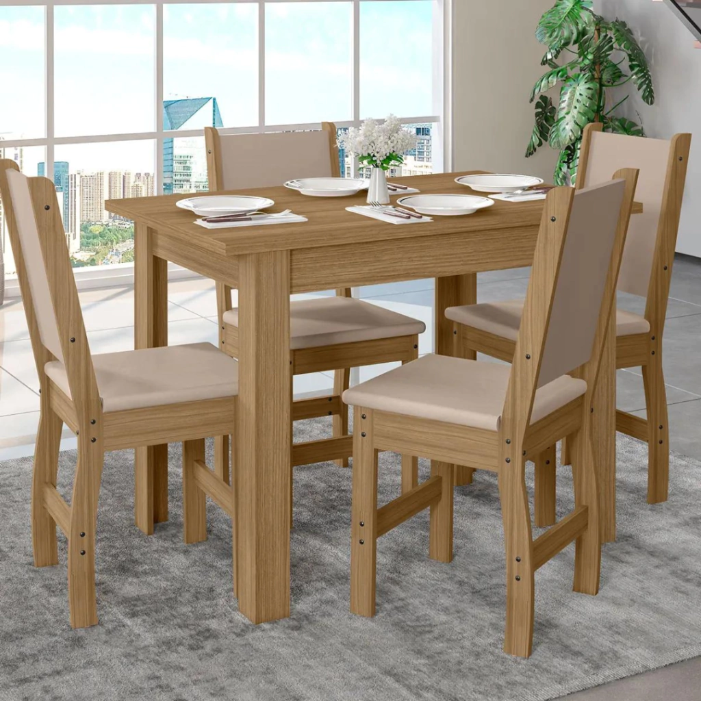Mesa de Jantar Bellagio Retangular 108cm Com 4 Cadeiras Clara Poliman Móveis