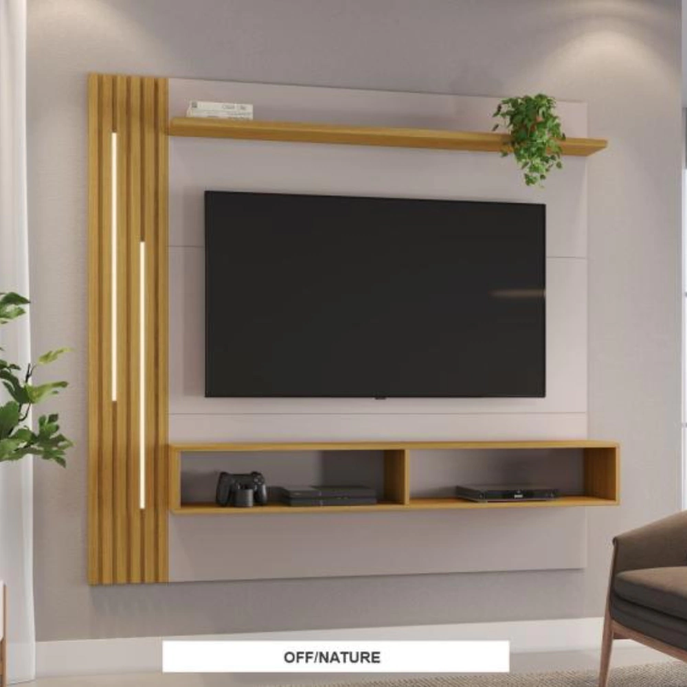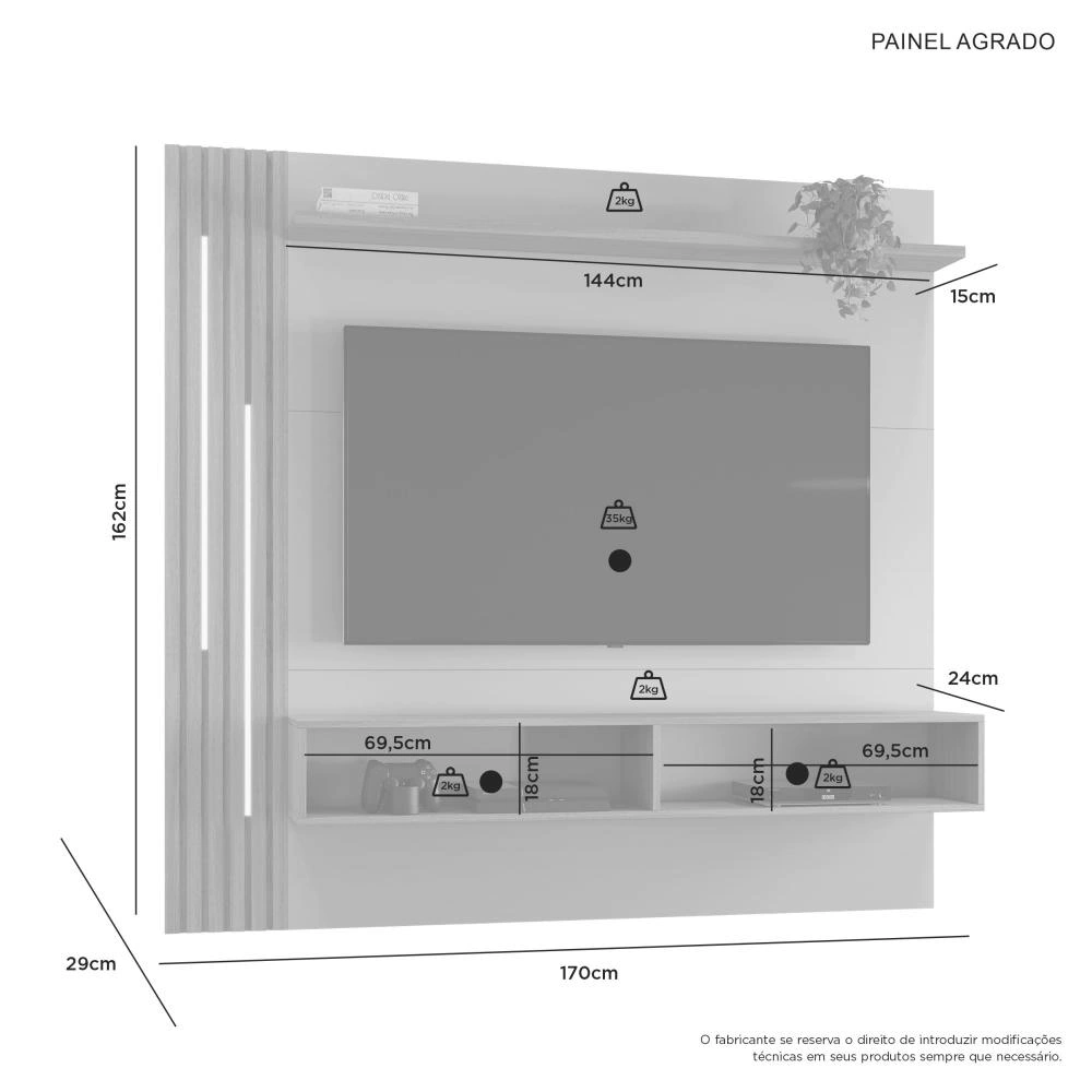 Para completar sua sala de estar e compor um ambiente agradável para curtir momentos de descontração, o Painel Agrado é a pedida certa! Além de receber bem sua tv, ele conta com nichos para acomodar aparelhos eletrônicos, o que facilita muito na organização do ambiente e dá um toque especial na decoração. Agora, é só aproveitar ao máximo seu centro de entretenimento.