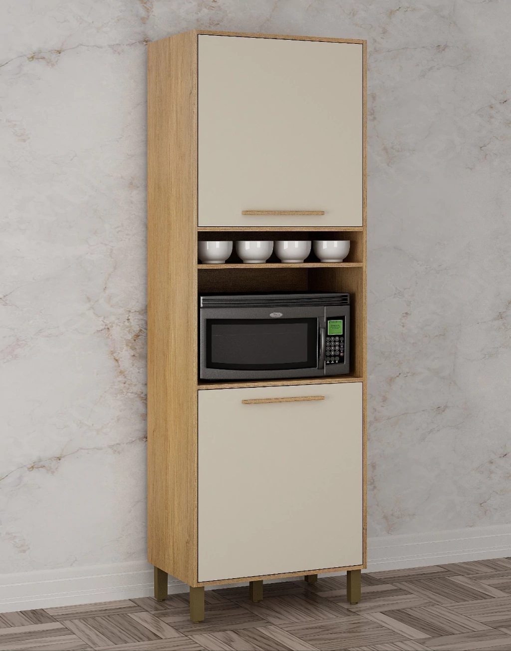 O Paneleiro Salvador é um produto elegante com excelente espaço interno. Contém um nicho para seu micro-ondas, além de duas portas para a melhor acomodação de seus pertences.