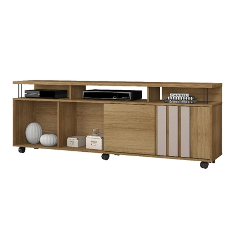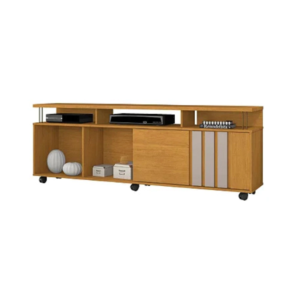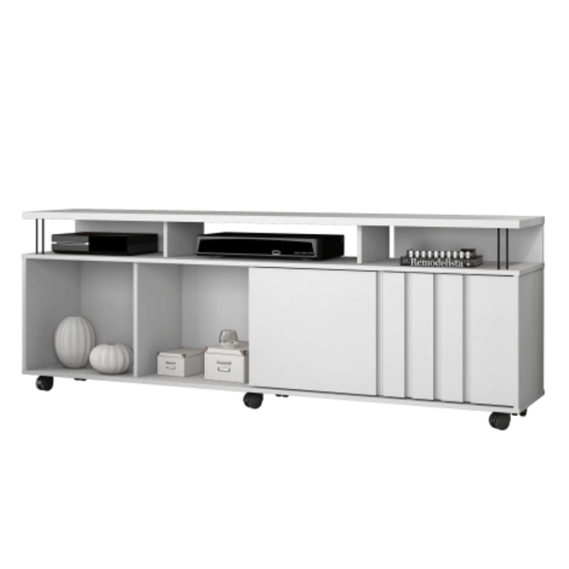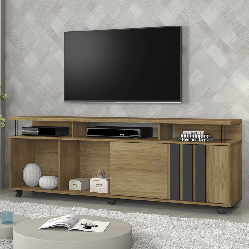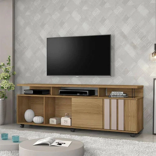 O Rack Atraente é perfeito para reunir a família e os amigos para assistir aos programas favoritos. Moderno e charmoso, ele possui nichos para aparelhos eletrônicos e porta de correr. Ideal para a sua sala de estar. O tampo espaçoso é ótimo para acomodar sua televisão ou, se quiser dar aquele toque mais estiloso, também dá pra ocupar com decorações especiais e ainda combinar com um painel.