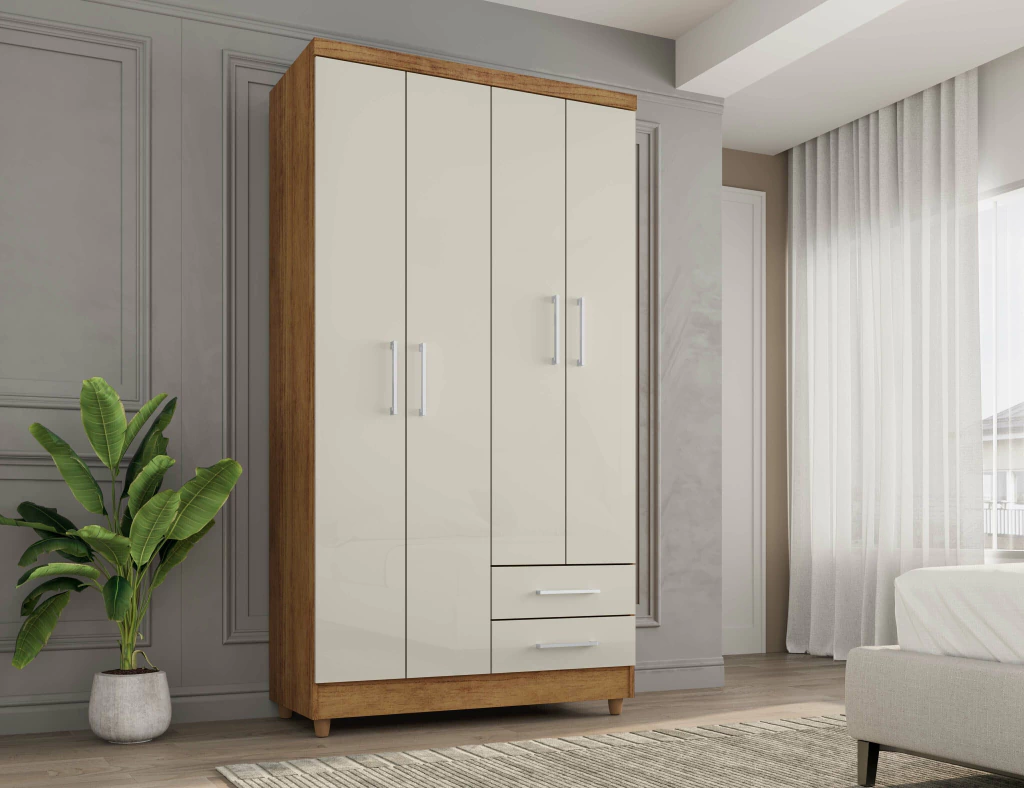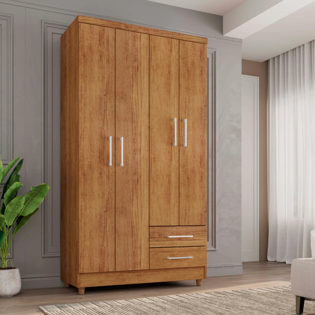 O Roupeiro Madri 4 Portas 2 Gavetas da Rud Rack é a combinação perfeita de funcionalidade e estilo para o seu quarto. Com 4 portas e 2 gavetas, este roupeiro oferece um amplo espaço interno para organizar suas roupas e acessórios de maneira prática e eficiente. O design moderno e elegante, aliado ao acabamento de alta qualidade, garante que ele se torne um destaque na decoração do ambiente. As portas proporcionam fácil acesso e ajudam a economizar espaço, enquanto as gavetas são ideais para itens menores. Um móvel robusto e durável, pensado para atender todas as suas necessidades de armazenamento com sofisticação.