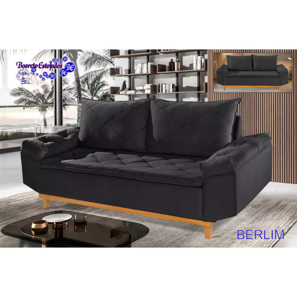 Sofá 3 Lugares Berlim Tecido Veludo 200cm