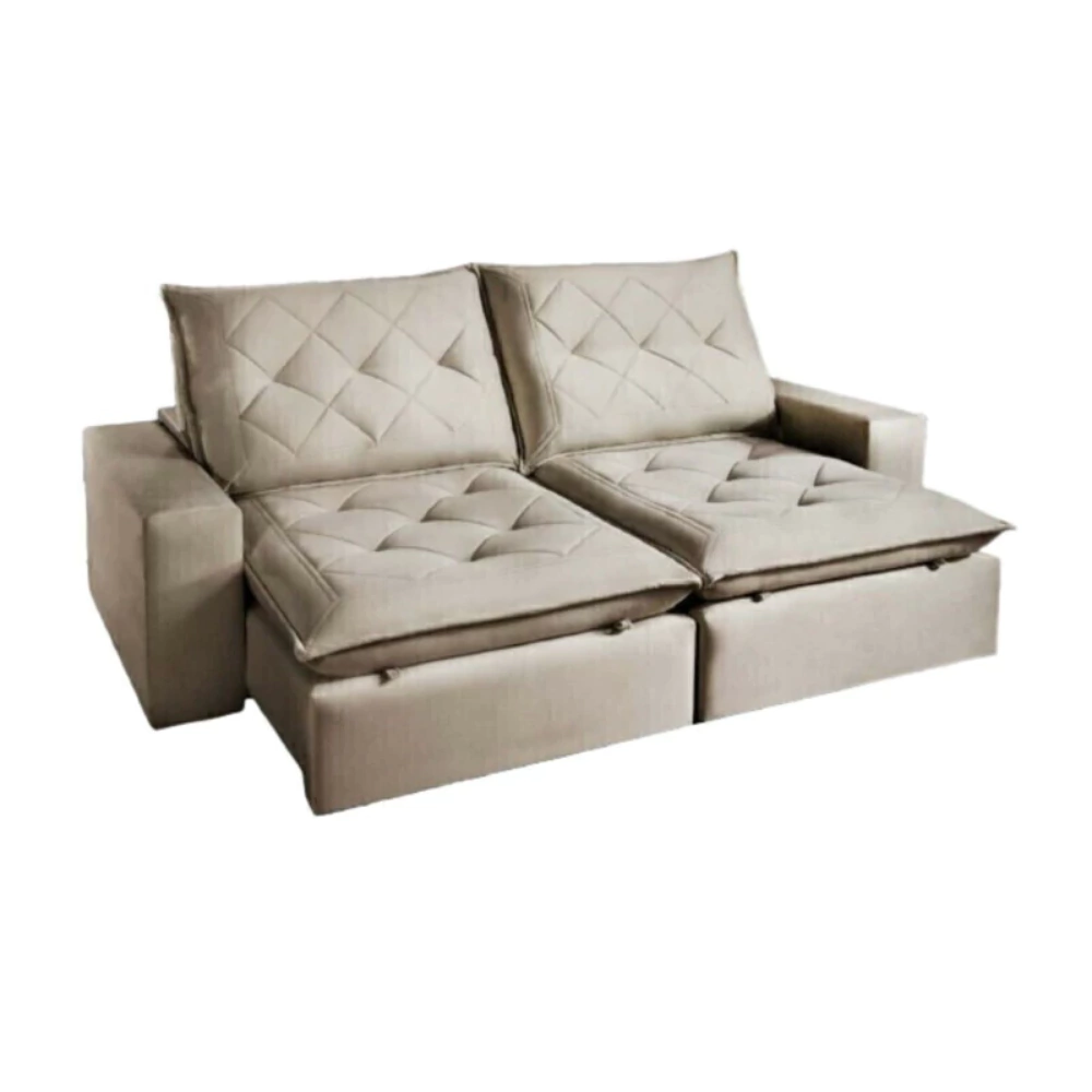 O assento é feito com pillow top de 18cm, espuma D33 soft, percinta italiana de alta resistência, molas bonnel que fica abaixo das percintas e do pillow top. Além disso, as corrediças para movimentação do assento no abrir e fechar são em tubo de ferro, com isso a qualidade e acima de tudo, a durabilidade aumentam significativamente.