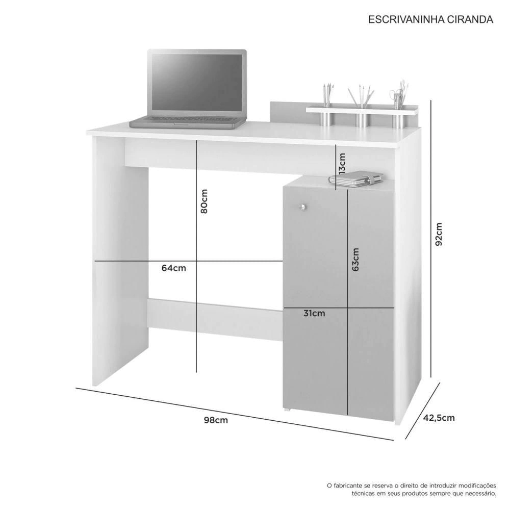 Beleza e funcionalidade definem a Escrivaninha Ciranda. Produzida em MDP de 15mm, possui suporte para lápis e canetas, porta livros e objetos com dobradiça de pressão, produto super compacto ideal para estudos. Aproveite!
