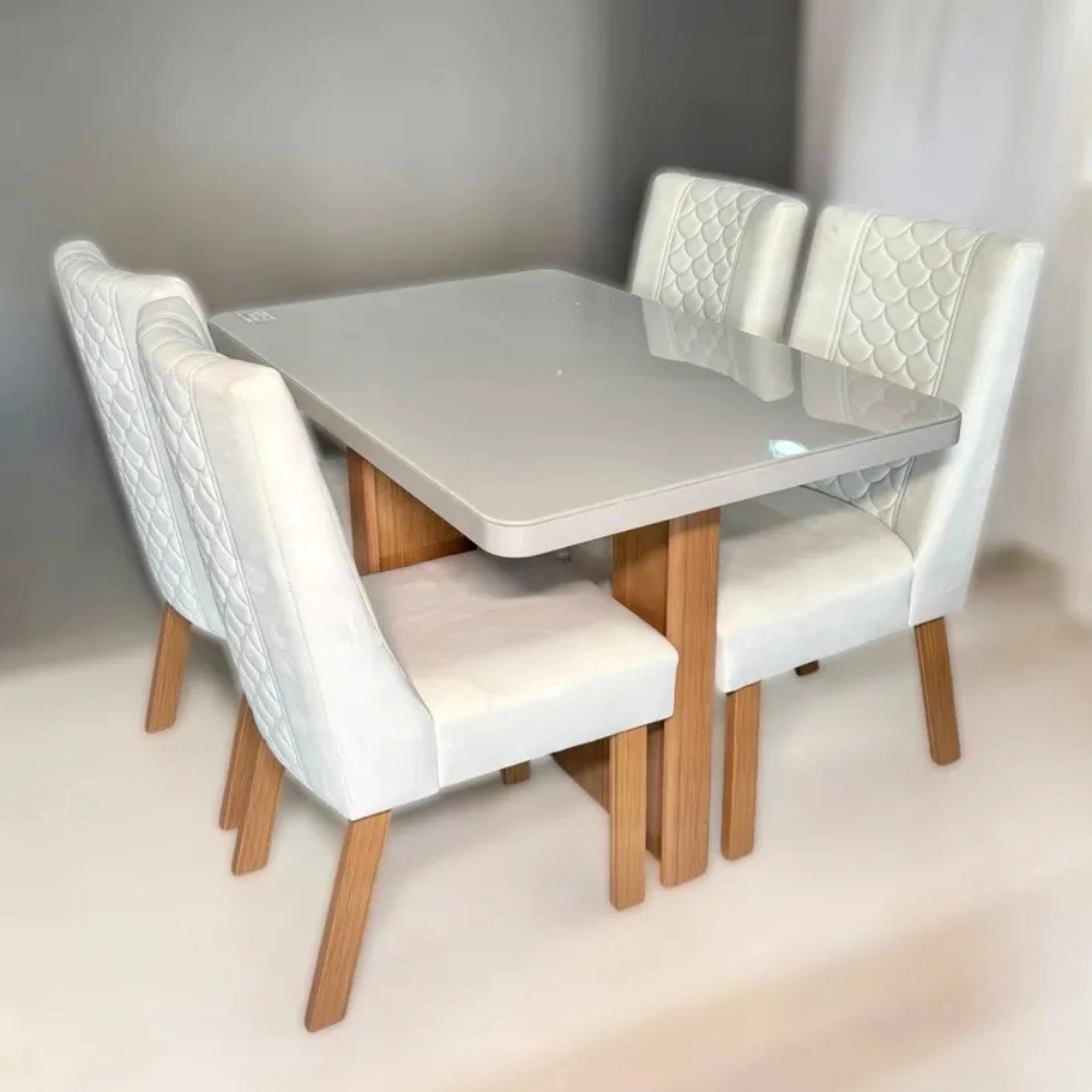 Transforme sua sala de jantar com o sofisticado Conjunto Dora da VALDEMOVEIS. Este conjunto combina design moderno, conforto excepcional e a durabilidade do MDF, perfeito para criar um ambiente acolhedor e elegante para suas refeições em família ou com amigos.