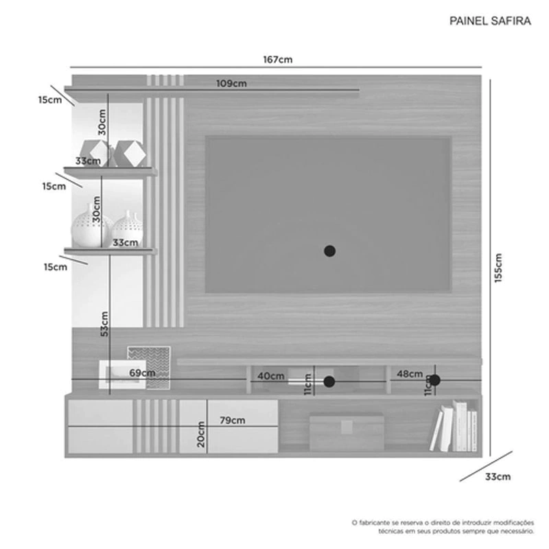 O Painel Safira chegou pra dar o toque a mais que você busca dar na sua sala. Acompanhado com portas de correr, espelhos e nichos para seus eletrônicos, o Painel atende bem suas necessidades.